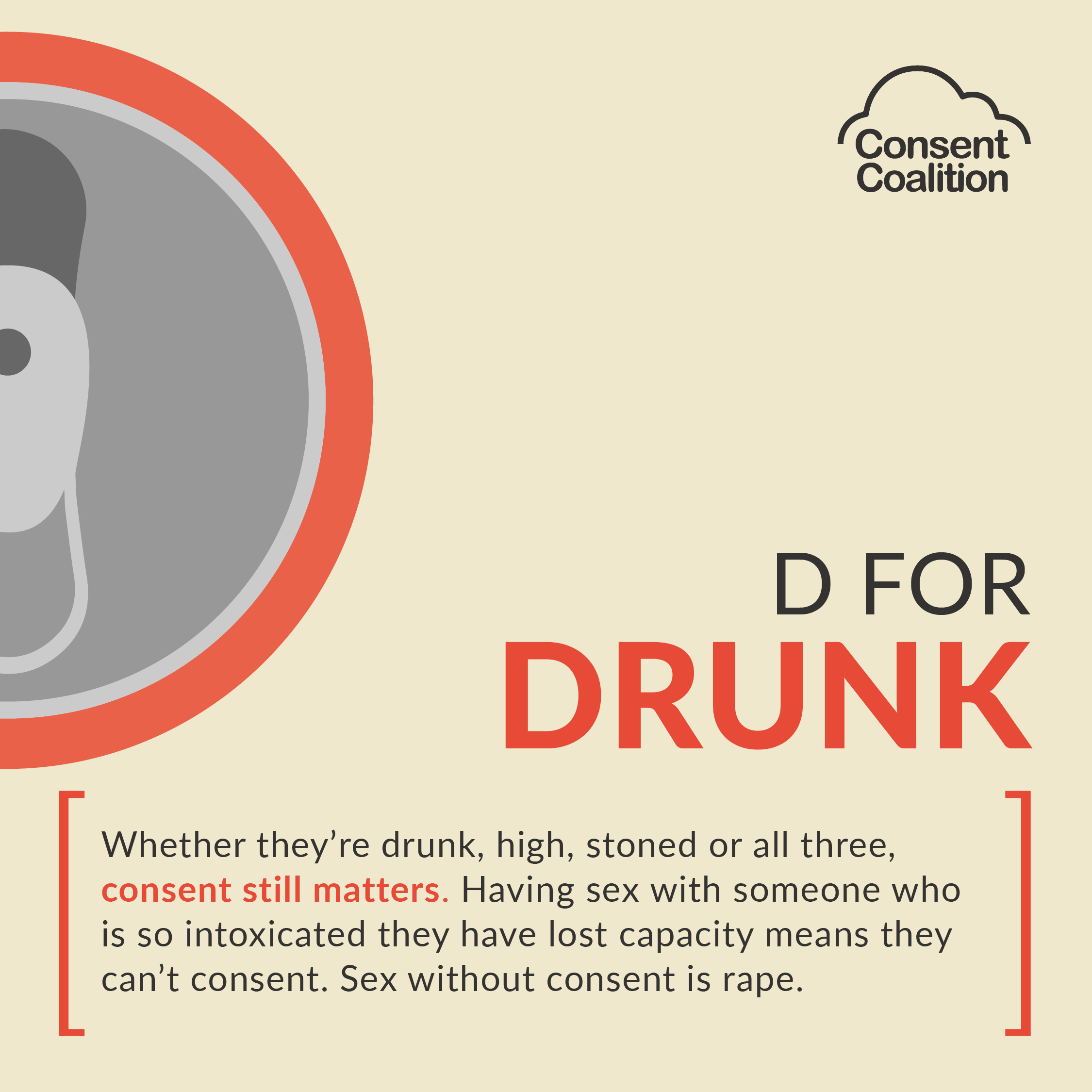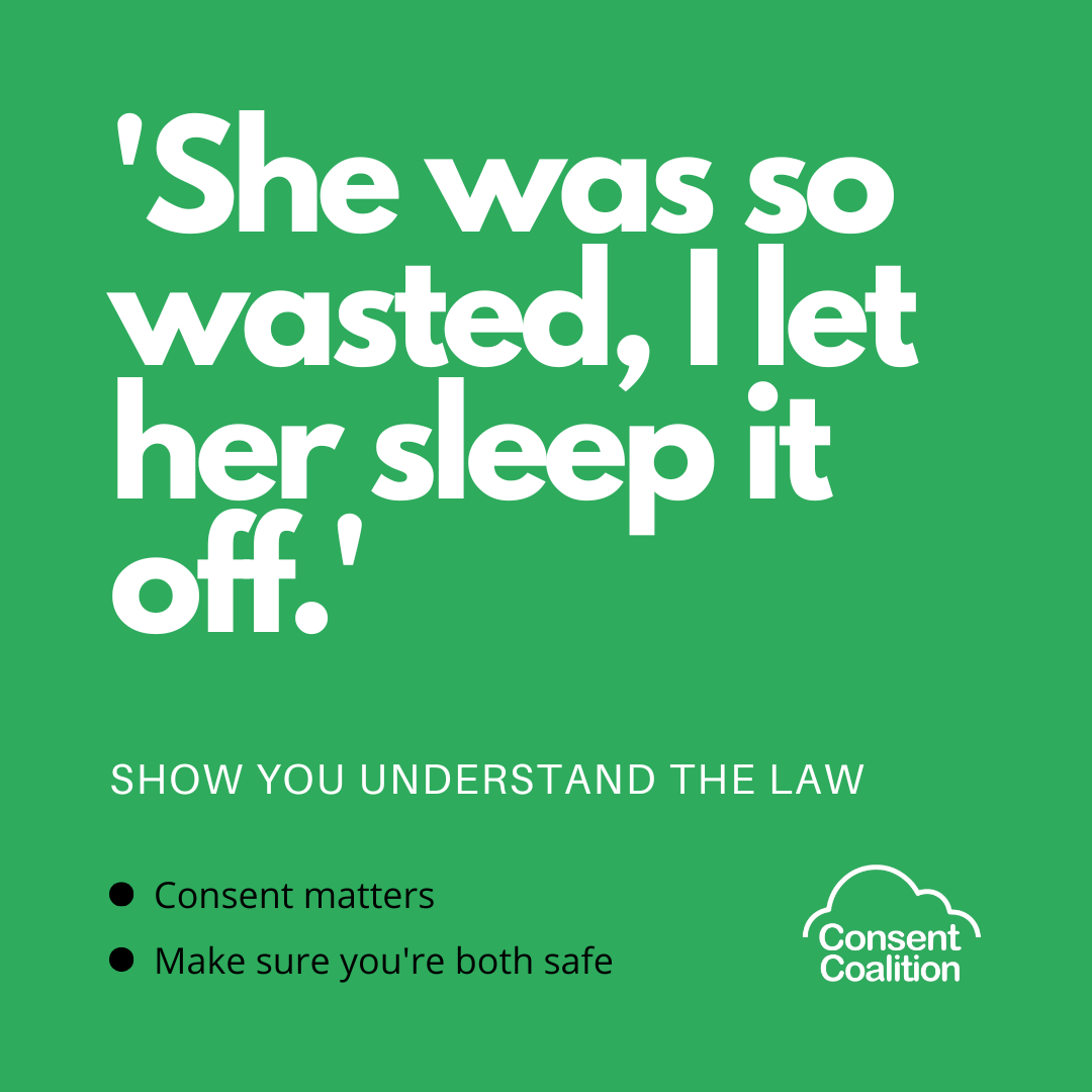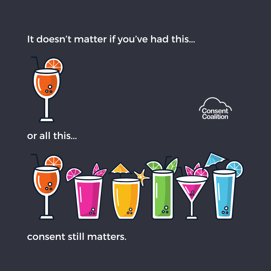 It is also important to remember that alcohol doesn’t excuse the decision to ignore consent.